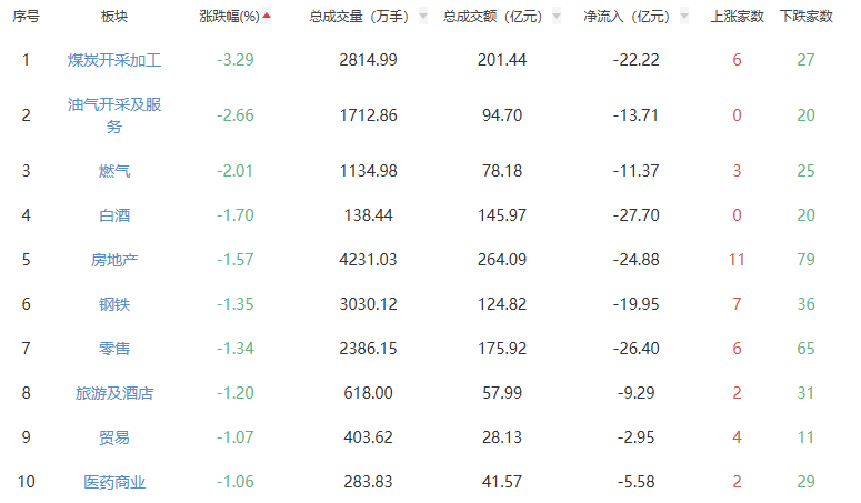 板块方面,元件、半导体、电子化学品等板块涨幅居前,煤炭开采加工、油气开采及服务、燃气等板块跌幅居前。