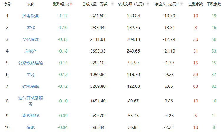 行业板块方面,小金属、电子化学品、元件等板块涨幅居前,风电设备、游戏、文化传媒等板块跌幅居前。