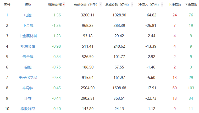 行业板块方面,影视院线、游戏、油气开采及服务等板块涨幅居前,电池、小金属、非金属材料等板块跌幅居前。