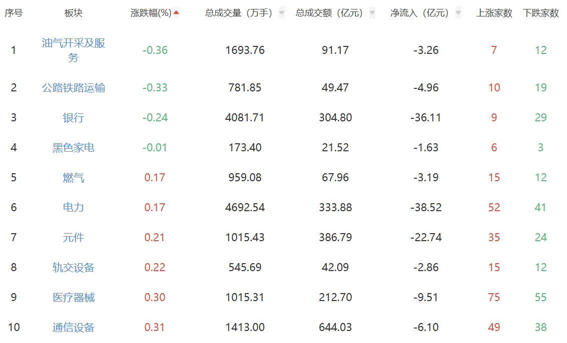 行业板块方面,能源金属、电池、其他电源设备等板块涨幅居前,油气开采及服务、公路铁路运输、银行等板块跌幅居前。