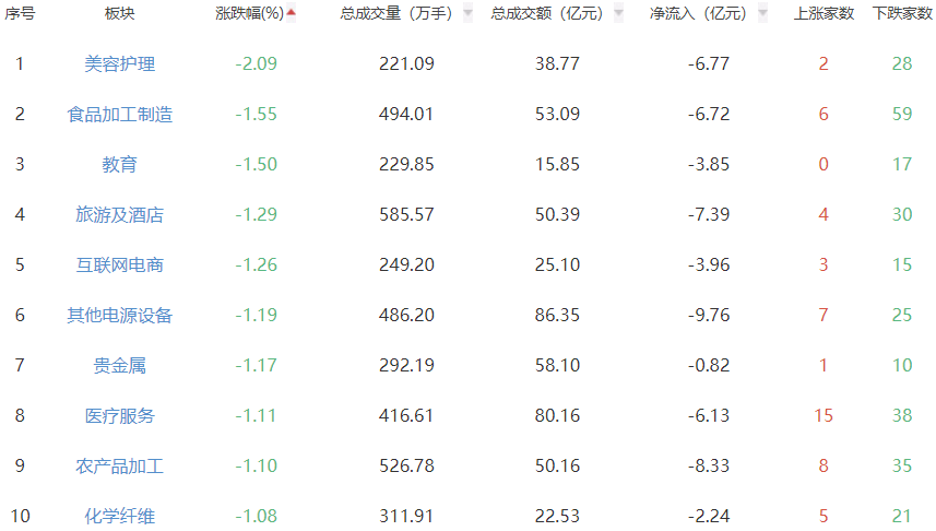行业板块方面,能源金属、银行、房地产等板块涨幅居前,美容护理、食品加工制造、教育等板块跌幅居前。