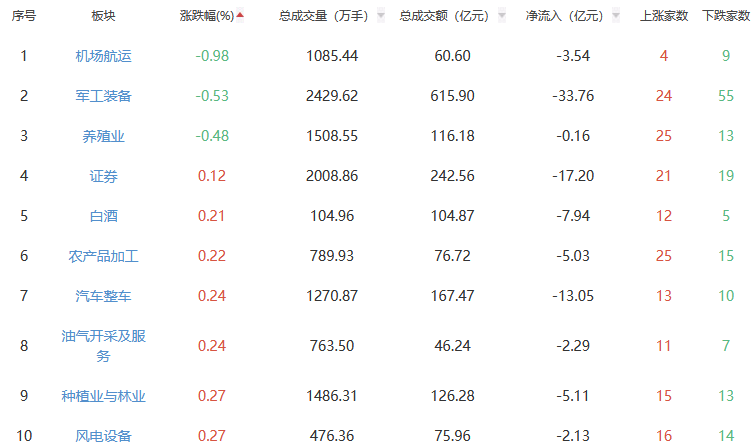 行业板块方面,游戏、通信设备、贵金属等板块涨幅居前,机场航运、军工装备、养殖业板块下跌。