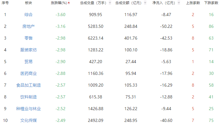 板块方面,非金属材料、风电设备、金属新材料等板块涨幅居前,房地产、零售、服装家纺等板块跌幅居前。