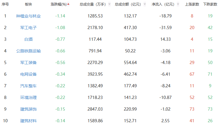A股市场板块涨跌幅排行