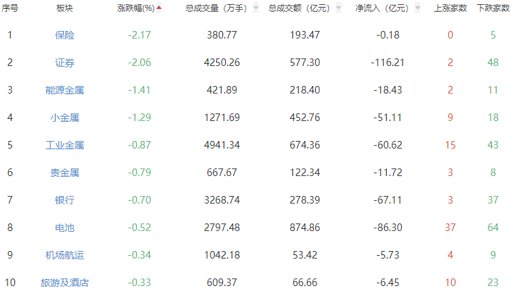 A股市场板块涨跌幅排行
