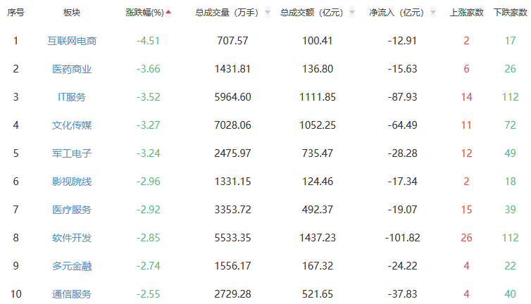 行业板块方面,贵金属、电子化学品、农化制品等板块涨幅居前,互联网电商、医药商业、IT服务等板块跌幅居前。