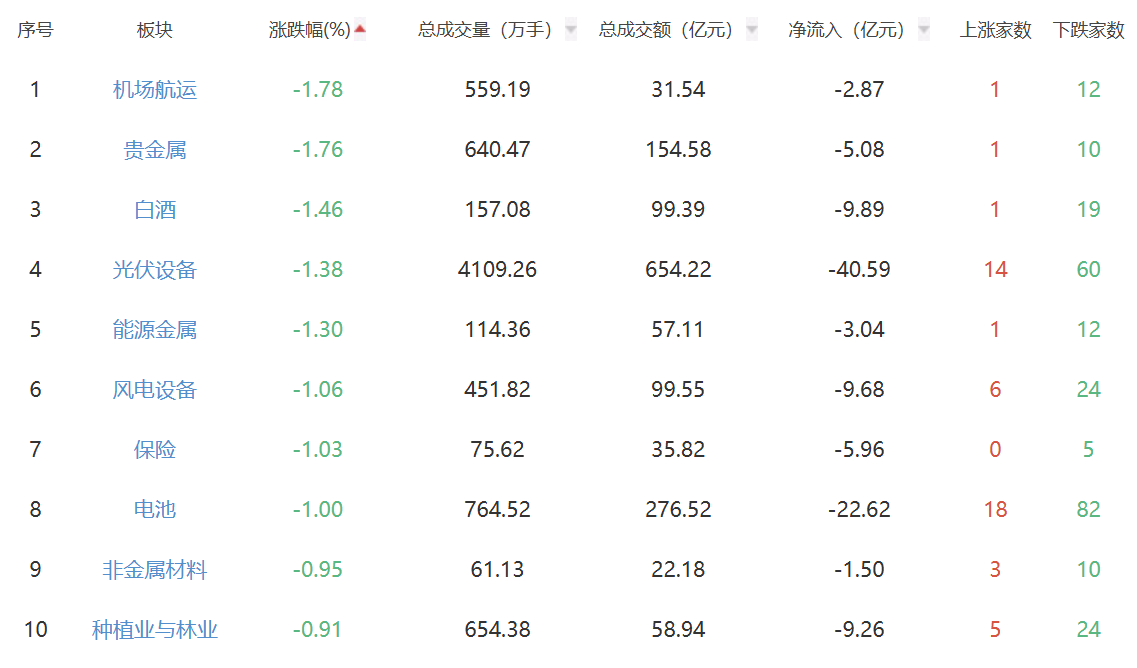 板块方面,影视院线、文化传媒、游戏等板块涨幅居前,机场航运、贵金属、白酒等板块下跌。