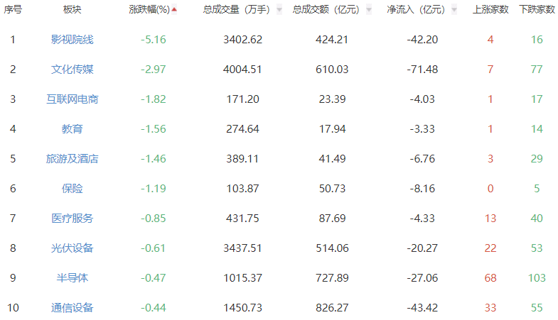 板块方面,小金属、能源金属、贵金属等板块涨幅居前,影视院线、文化传媒、互联网电商等板块下跌。