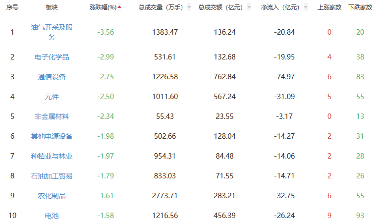 A股市场板块涨跌幅排行