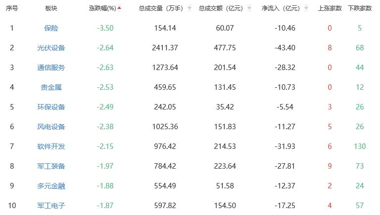 板块方面,能源金属、电池、小家电等涨幅居前,保险、光伏设备、通信服务等跌幅居前。