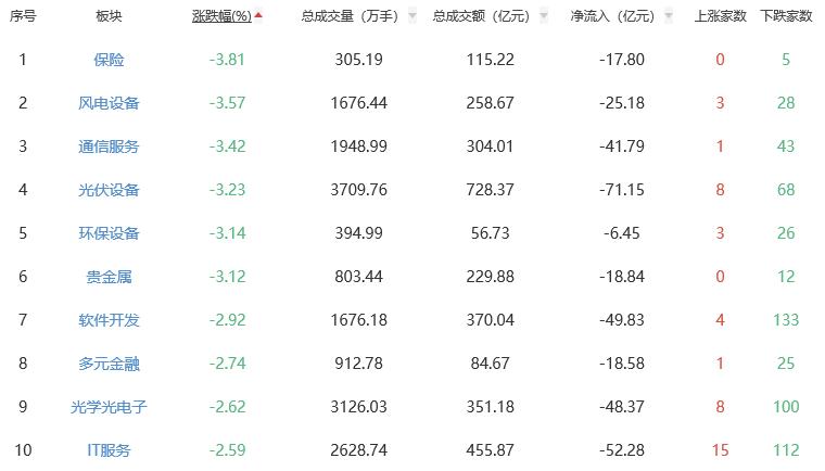 板块方面,油气开采及服务、能源金属、电池等涨幅居前,保险、风电设备、通信服务等跌幅居前。