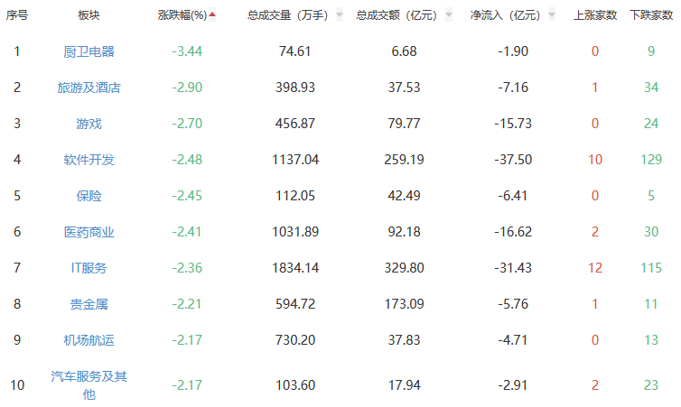 行业板块方面,油气开采及服务、电子化学品、消费电子等板块涨幅居前,厨卫电器、旅游及酒店、游戏等板块跌幅居前。