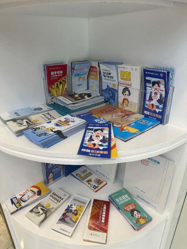 该行充分发挥网点人流密集、贴近市民的优势,将营业大厅打造成反假货币宣传的前沿阵地。走进网点,LED屏滚动播放着醒目的宣传标语,海报机上生动呈现“反假货币,人人有责”主题画面,营造出浓厚的宣传氛围。在公众教育区、柜台、等候区,摆放着精心设计的反假货币手册和折页,供客户随手取阅、细细学习。