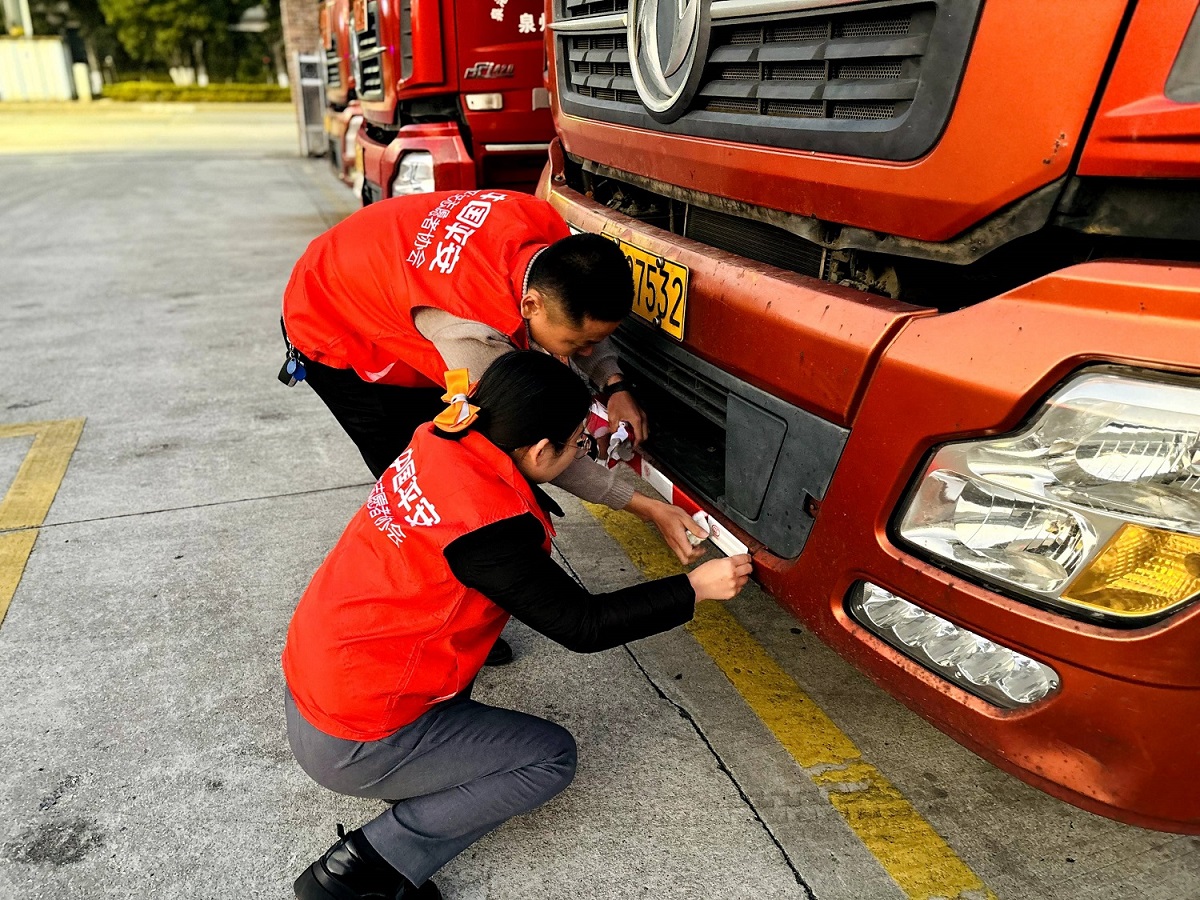 本次活动主动拓展服务边界,聚焦危险品运输行业高频出行、夜间作业的特点,将节日关怀转化为安全守护行动。志愿者团队结合专业风险防控经验,针对企业运输场景中的安全隐患,提供反光标识粘贴等定制化服务,精准破解客户运输安全痛点。
