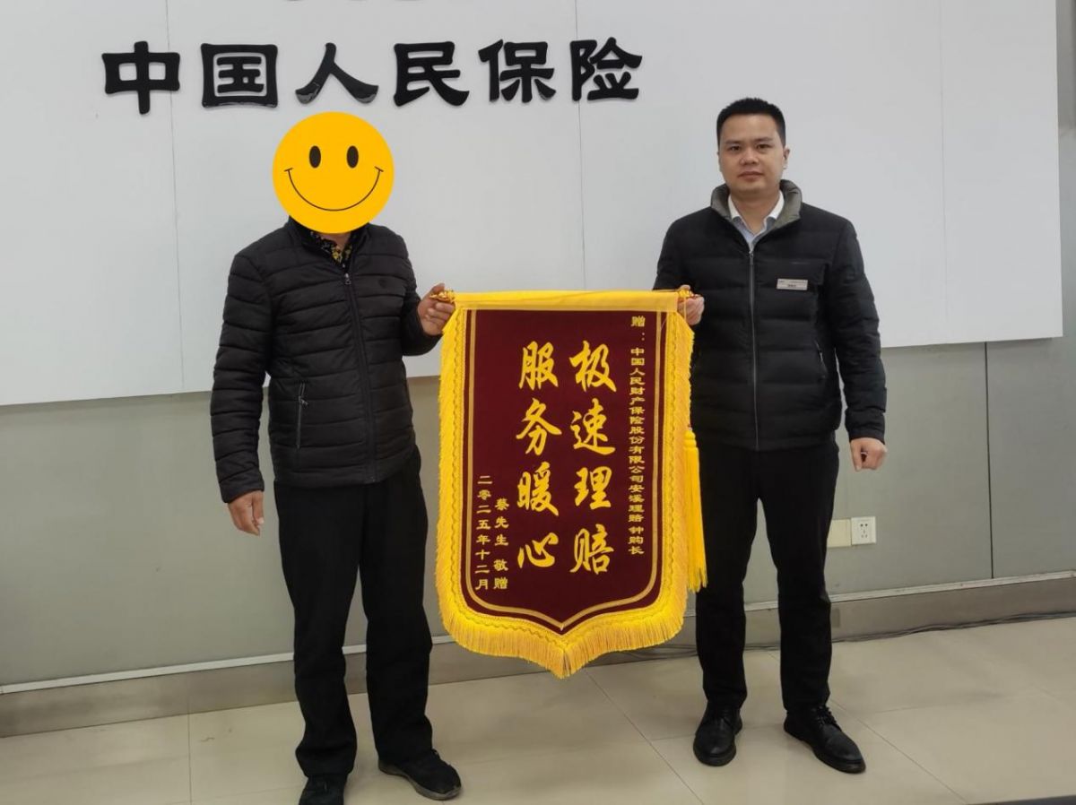 12月16日,人保财险泉州市分公司理赔中心安溪分部钟购长收到了一面锦旗,这面锦旗是由交通事故伤者蔡先生特意委托亲属送达,以感谢钟购长在事故处理过程中提供的专业、贴心服务。