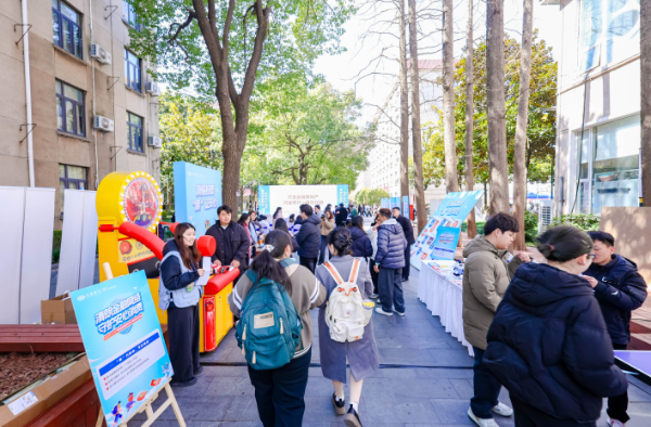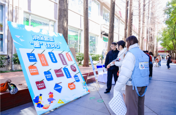 在趣味体验区,兴业银行信用卡中心精心设计乒乓球趣味赛、反诈投壶、“一拳超人”测力游戏、金融知识套圈赛等闯关游戏,以场景化趣味互动激发学习热情,现场学生排队体验,热情高涨。在互动答疑区,兴业银行信用卡中心员工拆解骗局套路,并发放知识手册,让金融教育从“单向灌输”升级为“有温度的双向对话”。